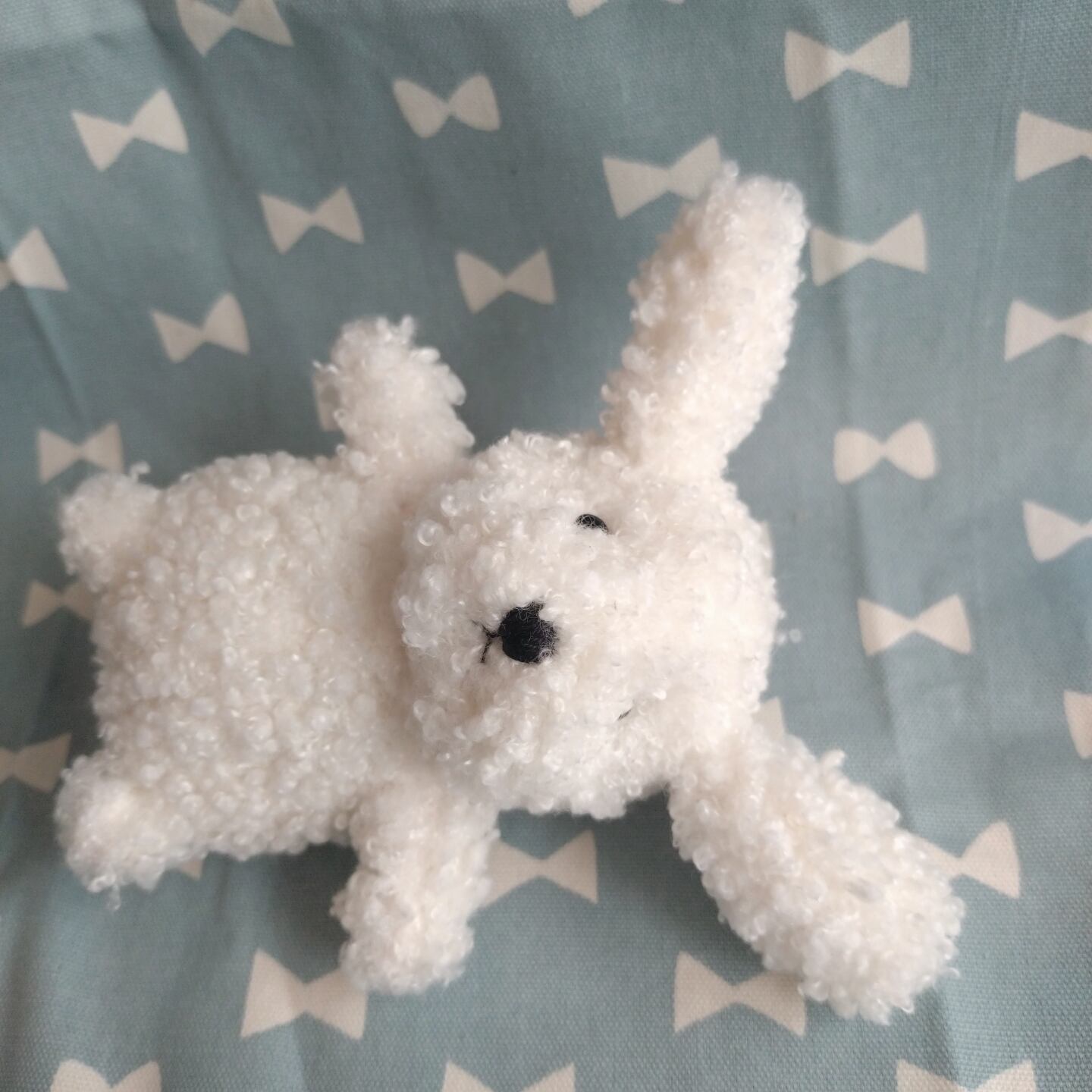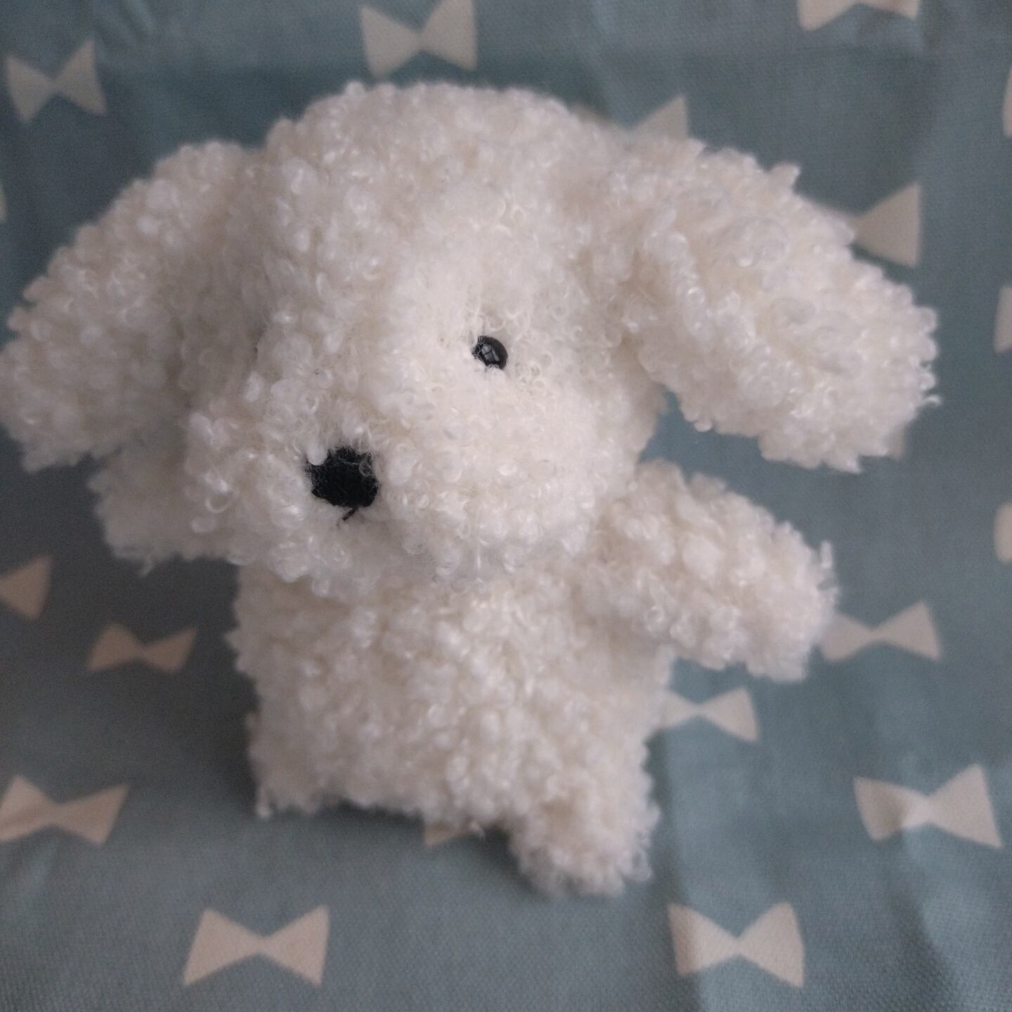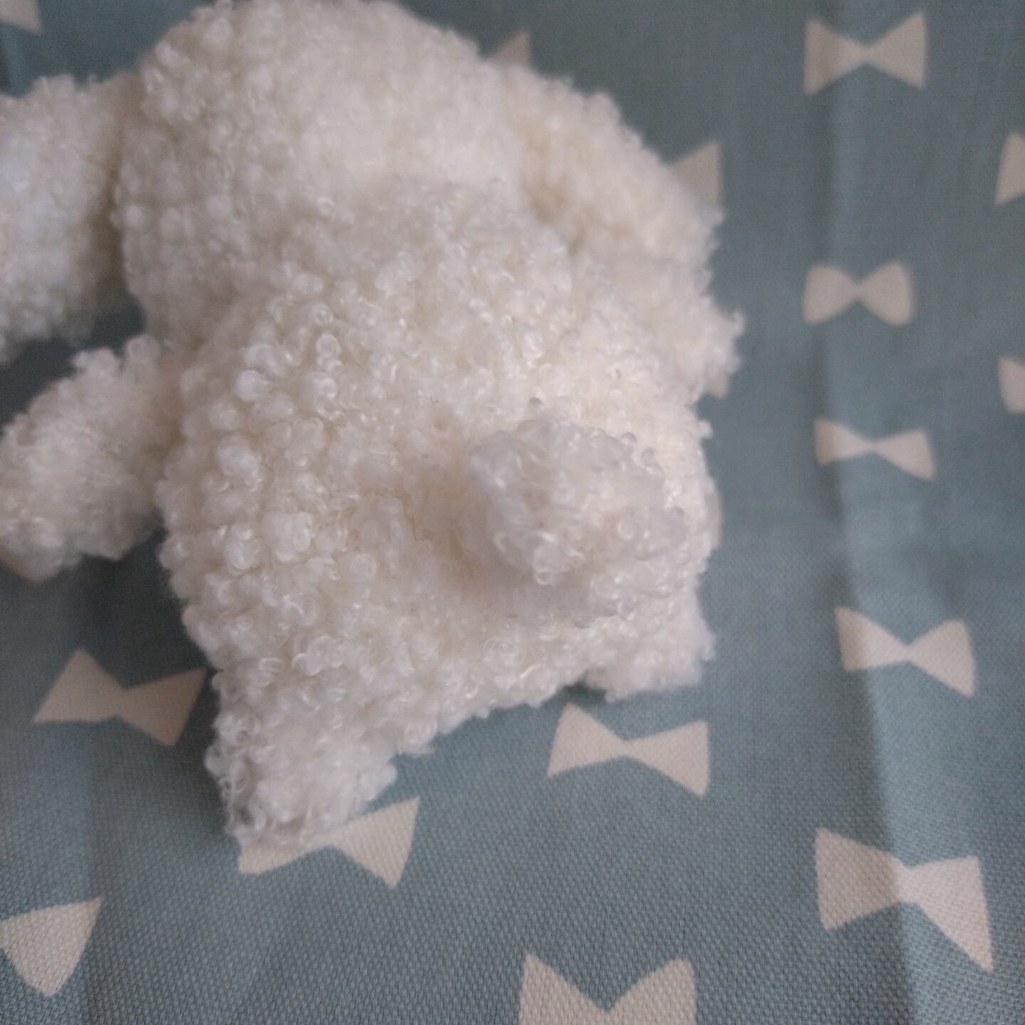 ※この子は目の周りにボンドがついてしまい、右目の周りの生地が少し固まってしまったので価格を下げております。