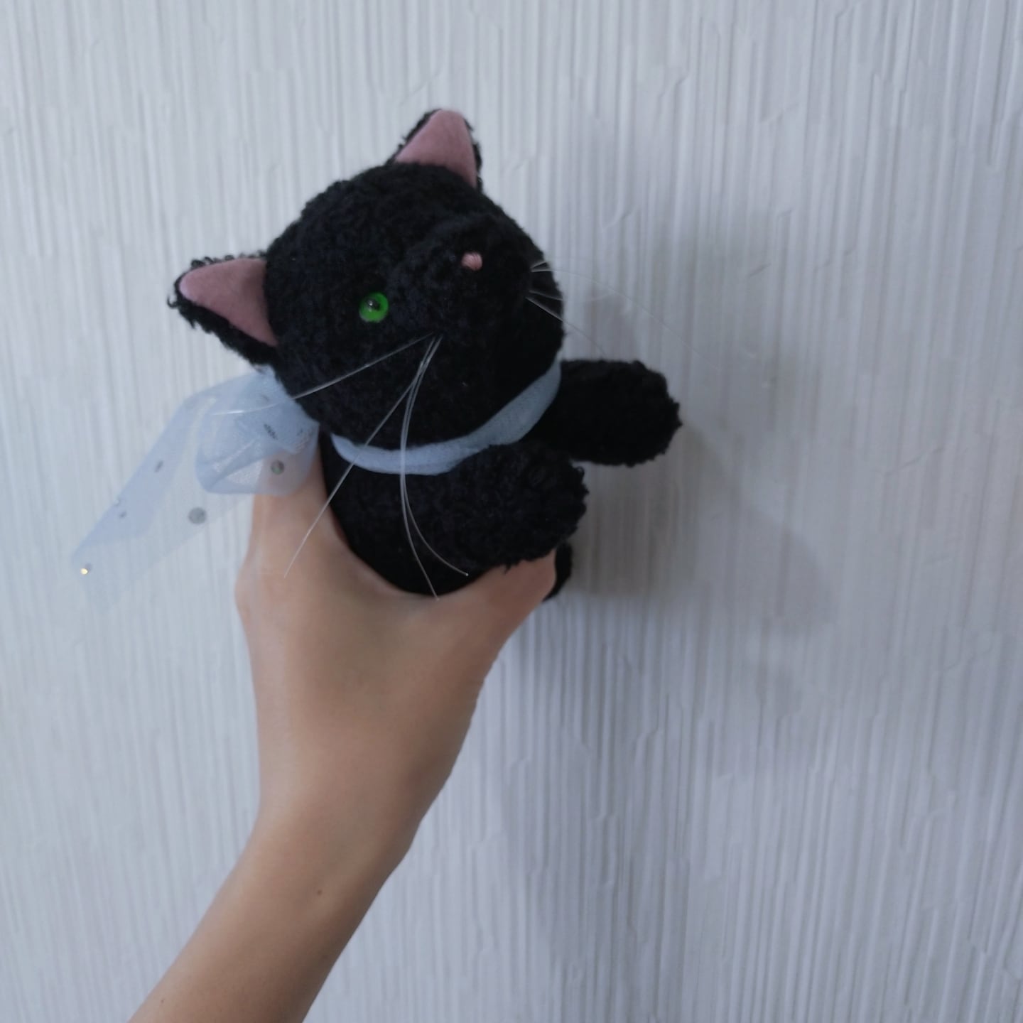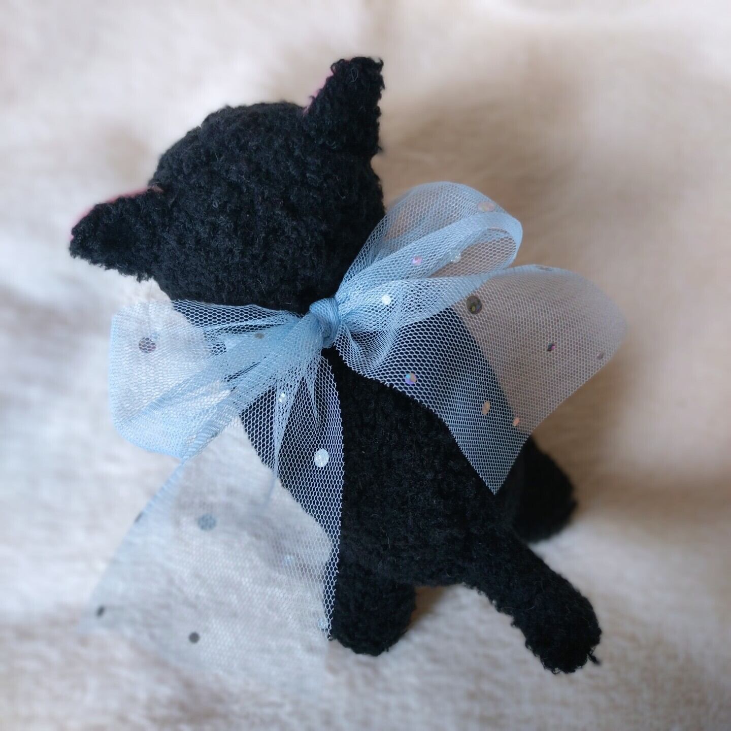 ※濃く映っている写真もありますがリボンの色は薄い水色です。