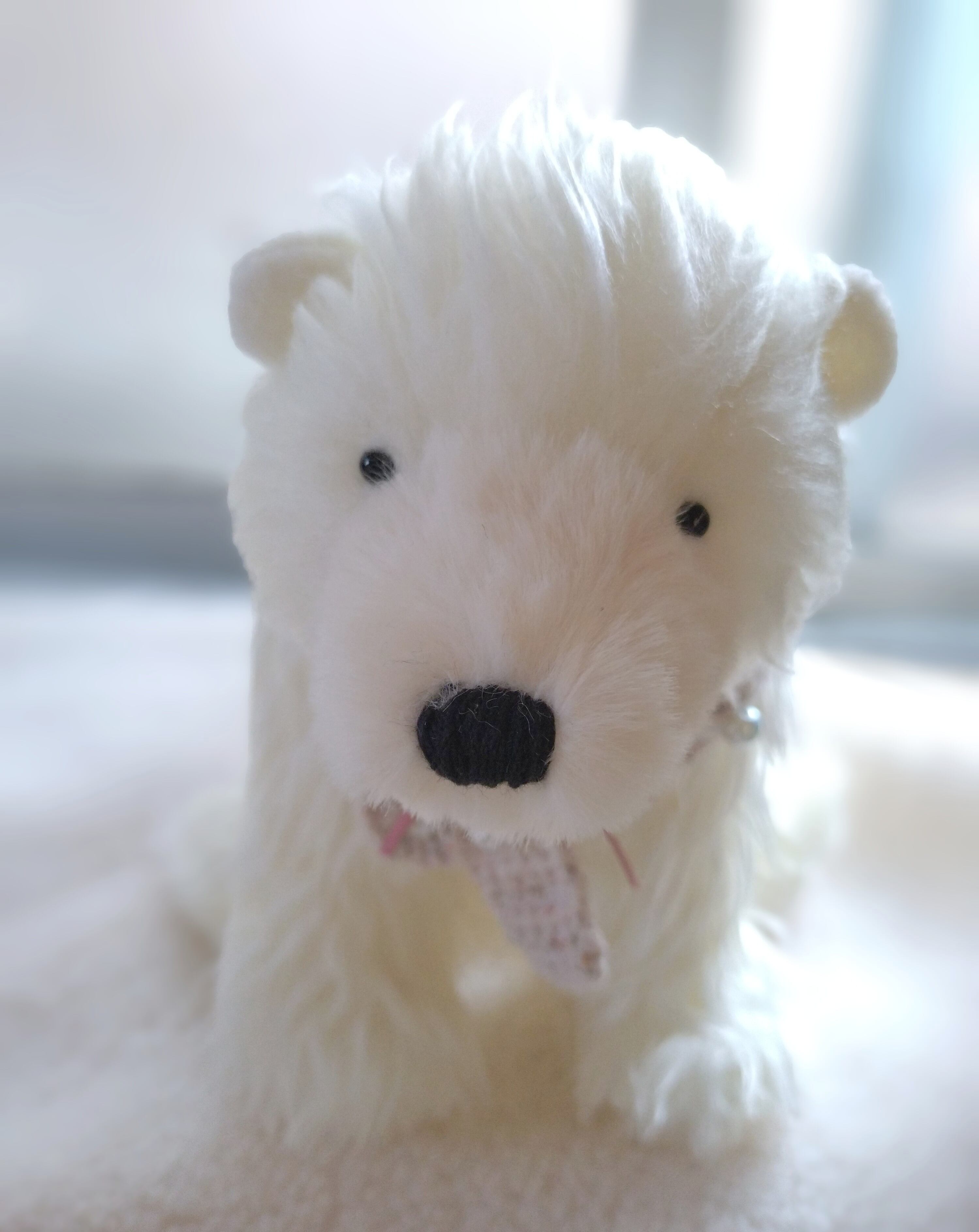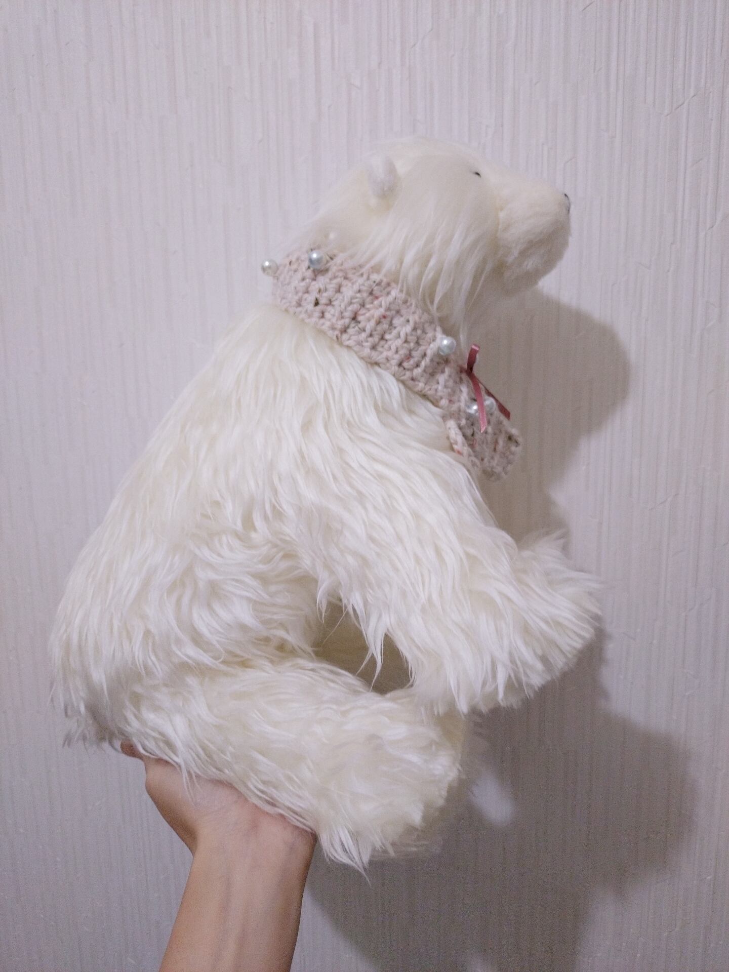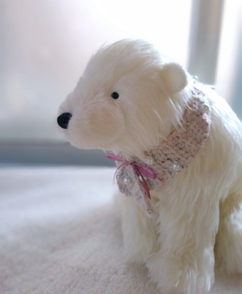 束感のあるファー生地で、真っ白ではなくほんのりアイボリーに近いです。