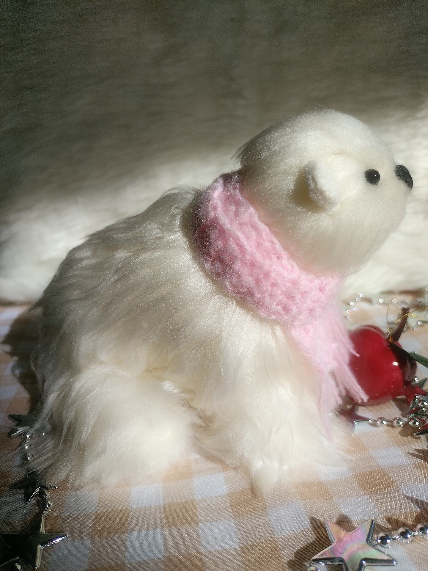 束感のあるファー生地で、真っ白ではなくほんのりアイボリーに近いです。